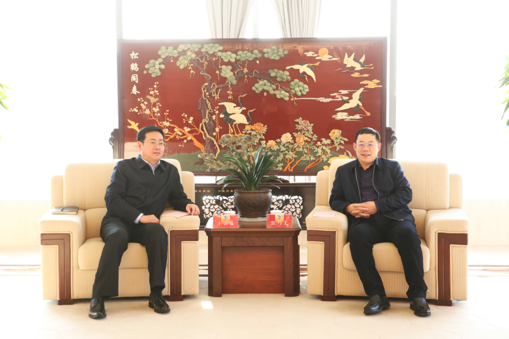 12月13日下午,九游老哥j9党委书记、董事长张乃文在盐会见内蒙古鄂托克前旗委书记王羽强一行,双方就加快项目推进、进一步深化合作等事宜进行深入交流。